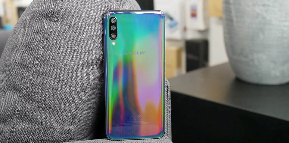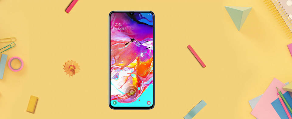 گوشی سامسونگ گلکسی A70 از سبک طراحی دیگر گوشی های سری گلکسی A 2019 سامسونگ پیروی میکند با این تفاوت که ابعاد و اندازه بزرگتری دارد و به نظر میرسد قاب پشت آن براقتر طراحی شده است. دو لبه سمت راست و چپ قاب پشت گوشی کمی خمیده هستند و این امر منجر به خوش دست تر شدن دستگاه میشود. در گوشه سمت چپ و فوقانی قاب پشت آن هم لنز دوربین سه گانه و چراغ فلش LED اختصاصی آن تعبیه شده است. با توجه به اینکه در قاب پشت دستگاه هیچ اسکنر انگشتی وجود ندارد، شاید این سوال در ذهنتان ایجاد شود که آنلاک گوشی چگونه انجام خواهد شد؟ سامسونگ گوشی گلکسی A70 را به نمایشگری مجهز کرده که مثل سری گوشی های گلکسی S10 از قابلیت اسکن انگشت کاربر و آنلاک صفحه نمایش پشتیبانی میکند. صفحه نمایش این گوشی ۶٫۷ اینچی است و به لطف حاشیه های باریکی که دارد، تقریبا ۸۶ درصد از کل مساحت پنل جلوی دستگاه را در بر میگیرد. روی لبه فوقانی نمایشگر گوشی یک زائده کوچک U شکل نصب است که لنز دوربین سلفی گوشی در آن قسمت نصب میشود و اصطلاحا به آن ناچ (Notch) میگوییم. سامسونگ روی صفحه نمایش این گوشی را با یک لایه گلس محافظ هم پوشانده است. سری گوشی های سامسونگ گلکسی A 2019 همگی از نظر سیستم عامل و رابط کاربری وضعیت یکسانی دارند. گوشی گلکسی A70 هم مثل دیگر گوشی های این سری به طور پیش فرض از اندروید ۹ پای (Android 9 Pie) بهره میبرد و رابط کاربری One UI سامسونگ هم در کنار آن نصب و راهاندازی شده است. تراشهای که در قلب این اسمارتفون بکار رفته، تراشه اسنپدراگون ۶۷۵ کوالکام است که از لیتوگرافی ۱۱ نانومتری بهره میبرد و یکی از جدیدترین تراشه های میان رده رو به بالای کوالکام محسوب میشود. پردازنده مرکزی این تراشه از هشت هسته پردازشگر تشکیل شده که شش مورد آن ها از نوع Kyro 460 Silver هستند و فرکانس کاری ۱٫۷ گیگاهرتزی دارند. دو هسته پردازشگر دیگر تراشه هم از نوع Kyro 460 Gold خواهند بود و فرکانس کاری ۲ گیگاهرتزی را ارائه میکنند. پردازنده گرافیکی Adreno 620 هم در این تراشه وظیفه تجزیه و تحلیل داده های گرافیکی را بر عهده خواهد داشت. دوربین اصلی این گوشی از سه لنز ۳۲، ۸ و ۵ مگاپیکسلی تشکیل شده که به ترتیب از نوع واید (Wide)، اولتراواید (Ultrawide) و عمقی (Depth) هستند. لنز دوربین واید ۳۲ مگاپیکسلی گوشی دیافراگم F/1.7 دارد. لنز دوربین اولتراواید ۸ مگاپیکسلی آن از دیافراگم F/2.2 بهره میبرد و لنز دوربین عمقی ۵ مگاپیکسلی آن هم دیافراگم F/2.2 را ارائه میکند. دوربین اصلی این گوشی از یک چراغ فلش LED بهرهمند است و از قابلیت هایی مثل فوکوس خودکار مرحلهای (PDAF)، عکسبرداری پانوراما، HDR، عکسبرداری پرتره، عکسبرداری با زاویه دید گسترده و ضبط ویدئو های ۴K با فریم ریت ۳۰ فریم در هر ثانیه پشتیبانی به عمل میآورد.